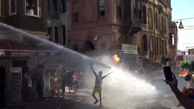 Την Κυριακή 28 Ιουνίου του 2015 στην Κωνσταντινούπολη, πραγματοποιήθηκε το Gay Pride. Χιλιάδες διαδηλωτές είχαν κανονίσει να συναντηθούν στο κέντρο της πρωτεύουσας για την πορεία ειρηνικά, αλλά η τουρκική αστυνομία είχε άλλη άποψη. Τα ΜΑΤ διαλύουν βίαια τους διαδηλωτές, οι οποίοι φώναζαν συνθήματα καταγγέλλοντας το «φασισμό» της σημερινής κυβέρνησης, με δακρυγόνα, κανόνια νερού και πλαστικές σφαίρες. Στο βίντεο, βλέπουμε έναν διαδηλωτή να εκσφενδονίζεται από ένα κανόνι νερού και να πέφτει βίαια στο έδαφος. Οι 12 εκδηλώσεις του Gay Pride που πραγματοποιήθηκαν κατά τα προηγούμενα χρόνια είχαν περάσει χωρίς περιστατικό.