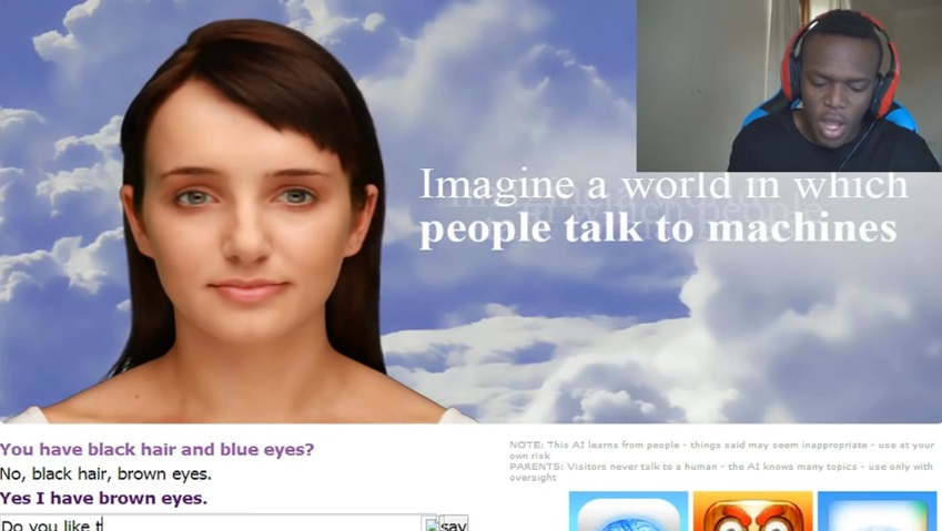 Ο Όλατζ (γνωστός και ως KSI) δοκιμάζει την Evie, ένα πρόγραμμα συνομιλίας που χρησιμοποιεί έναν αλγόριθμο τεχνητής νοημοσύνης για να απαντά σε οποιαδήποτε ερώτηση και να συνομιλεί με έναν άνθρωπο. Την ρωτά διάφορα πράγματα, και κάποια στιγμή αν “της αρέσει η ΚΚΚ;” (Κου Κλουξ Κλαν). Φαίνεται τελικά πως το μποτ είναι λίγο ρατσιστής.