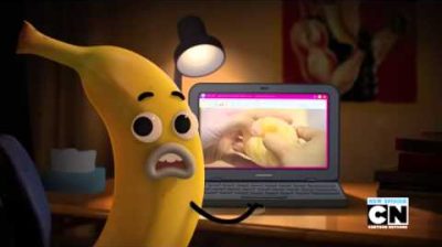 Ο Τζο η μπανάνα, βλέπει ακατάλληλα βίντεο στο λάπτοπ του. Μια αστεία σκηνή από την σειρά κινουμένων σχεδίων “The Amazing World of Gumball” στο κανάλι Cartoon Network.