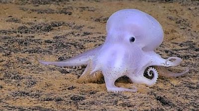 While exploring the deep sea northeast of Hawaii’s Necker Island with a remotely operated vehicle, scientists aboard the NOAA ship Okeanos Explorer were surprised to encounter what may be a never-before-seen octopus. Though the February 27 discovery was made at a depth of 4,290 meters (14,075 feet), the octopus belongs to a group of octopods that have not previously been observed at depths greater than 4,000 meters (13,123 feet). This octopus lacks pigment cells typical of most cephalopods, which gives it a ghostlike appearance.