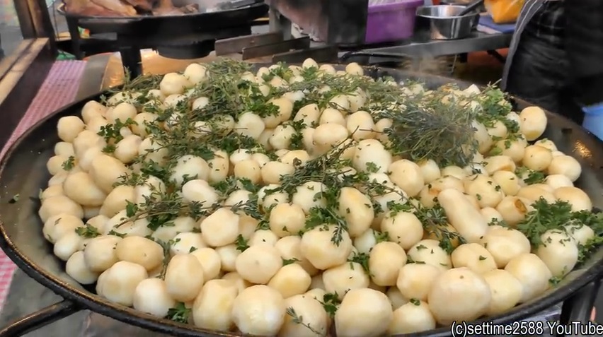 Η προετοιμασία ενός γεύματος με βοδινό κρέας, δεντρολίβανο, πατάτες, πουτίγκα και λιωμένο τυρί, από έναν πωλητή στην αγορά Greenwich του Λονδίνου.