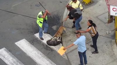 Σε ένα δρόμο της πόλης Chimbote στο Περού, ξέσπασε μια άγρια μάχη ανάμεσα σε δύο αδέσποτους σκύλους. Αντιμέτωποι με αυτό το συμβάν, οι παρευρισκόμενοι μαζί με μερικούς αστυνομικούς προσπάθησαν γρήγορα να παρέμβουν με τη ρίψη νερού και με χτυπήματα στον καφέ σκύλο που δεν ξεκολλούσε με τίποτα το σαγόνι του από τον αντίπαλό του. Μάταια όμως. Τα ραβδιά στη συνέχεια θα συνοδευτούν από κλωτσιές και σπρέι πιπεριού, ακόμη και ένα taser, αλλά τίποτα δεν λειτουργούσε. Τελικά τα κατάφεραν μετά από μεγάλη προσπάθεια.