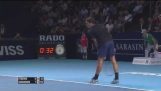 A man wanted to shoot with a big revolver, and after the shot, the gun was aimed at his face.