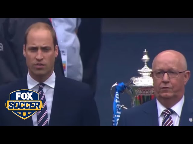 Karen Harding misses her cue to start the national anthem at the FA Cup Final.
