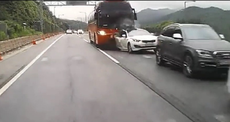 Στη Νότια Κορέα, η κάμερα σε ένα αυτοκίνητο κατέγραψε ένα τρομακτικό ατύχημα ανάμεσα σε ένα λεωφορείο και πολλά αυτοκίνητα στην εθνική οδό Youngdong. Η σκηνή δείχνει ένα λεωφορείο να πλησιάζει με μεγάλη ταχύτητα σε ένα τούνελ χωρίς να επιβραδύνει, ενώ πολλά οχήματα βρίσκονται μπροστά του σταματημένα.