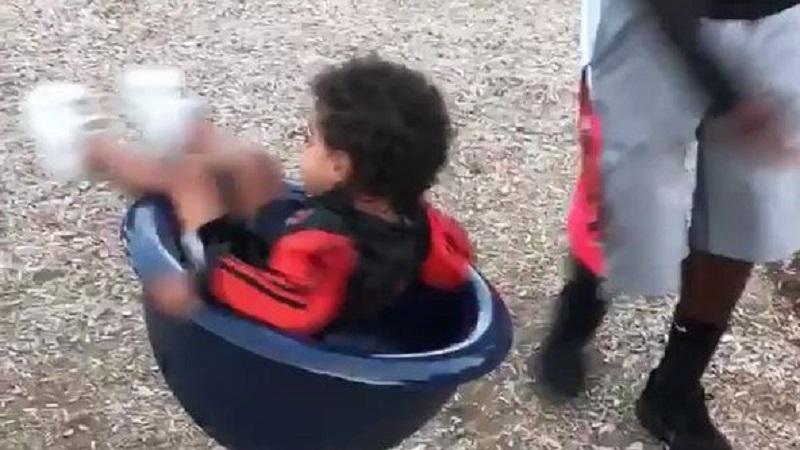 في ملعب, مدور أب ابنه في لعبة تشبه أعلى. وبعد بضع ثوان, صغيرة تحاول الحصول على ما يصل ولكن يفقد توازنه ويسقط على الأرض. أبي يندرج تحتها يضحك على النحو الذي يراه له غير قابل للهضم ابنه.