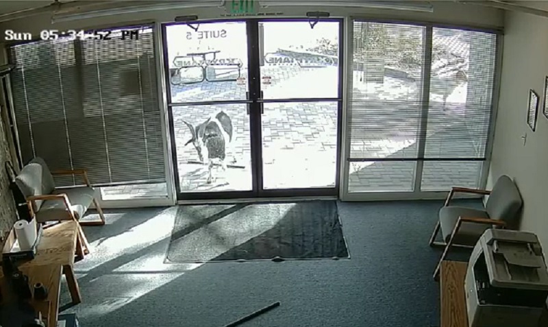 الاثنين 17 يوليو 2017 في لويزفيل ، كولورادو, وجد مسؤولو الشركة Argonics الباب الزجاجي لمكتب كسر. يراقب الفيديو من كاميرا أمنية وجدت الجاني, ماعز غاضبة! هاجم الحيوان أبواب دخول الزجاج اثنين, إعطاء الصعب ضربات في الرأس.