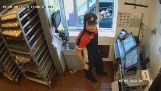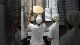 بيتزا Seecafé الإيطالي في هاناو، ألمانيا, صانع البيتزا ينفذ تظهر بين الزبائن في المطعم. بمهارة فائقة, تدور عجينة البيتزا في يد, جعل شعوذة مثيرة للإعجاب.