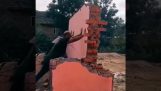 على طريق منحدر في ووستر، انجلترا, سائق ناقلة دون ضرب بعض الجدران، وسيارتين واقفتين وإشارات المرور (3 أغسطس 2018). لحسن الحظ, لم هذا الحادث مذهلة لا يسبب أي ضرر.