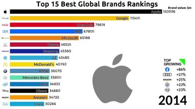 ترتيب أفضل 15 علامة تجارية في جميع أنحاء العالم من 2000 إلى 2019