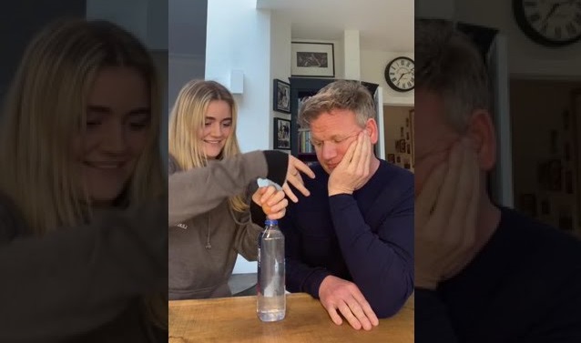 الشيف البريطاني الشهير جوردون رامزي, يشاهد خدعة سحرية لابنة تيلي.