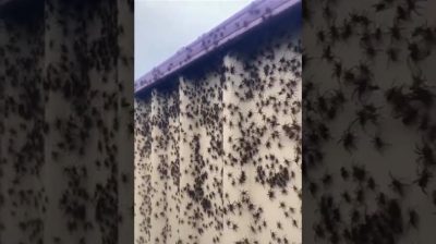 في أستراليا, يظهر لنا رجل سياجًا فيه آلاف العناكب. ويقال إن الغزو نجم عن فيضانات غزيرة استمرت خمسة أيام. قامت العناكب بخروج هائل إلى أرض مرتفعة, الوصول إلى الحقول والمنازل للهروب من المياه.