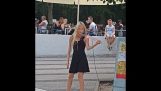 عازفة الجاز دورين كيتشنز تثير الإعجاب من خلال عزفها المنفرد على أغنية 'When the Saints Go Marching In' مع الكلارينيت. مقتطفات من حفلة موسيقية في شارع رويال في نيو أورلينز.