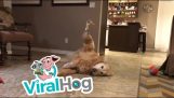 اثنين من الكلاب أداء خدعة موازنة لا يصدق