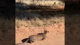 يواجه غرير أسود شجاع ثلاثة فهود تهاجمه, الحديقة الوطنية جنوب أفريقيا كروجر.
