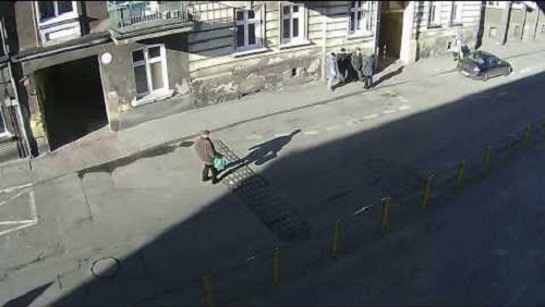 الجد التعساء يفقد توازنه كما أنه يمر عبر عثرة السرعة على الطريق. لحسن الحظ كان هناك شيء خطير.