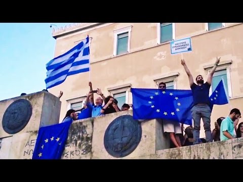احتجاج مؤيد للاتحاد الأوروبي في أثينا، اليونان، 18 يونيو 2015 – نبقى أوروبا نحتشد حول الدستور. أكثر من 3.000 المواطنين كانوا حاضرين في الاجتماع، عقد أيديهم على الإعلام اليونانية, ولكن، وإعلام الاتحاد الأوروبي, أراد المتظاهرون يعربون عن قلقهم إزاء التطورات في المفاوضات مع الشركاء.