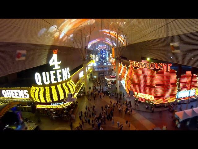 فيديو من ركوب مذهلة مع بكرة سلوتزيلا في شارع فريمونت تجربة مول, في مركز لاس فيغاس. يبلغ طول البكرة 540 مترًا وتصل سرعتها إلى 60 كيلومترًا في الساعة.