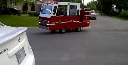 هذه سيارة المطافئ حقيقية مصغرة في أونتاريو، كندا. عند النظر الحرائق قبالة من مزحة.