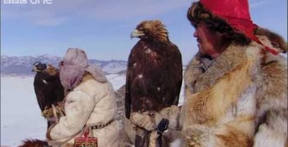 كازاخ هما مطاردة فوكس مع كريستو المدربين, جبال التاي في منغوليا.