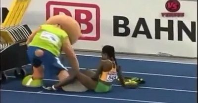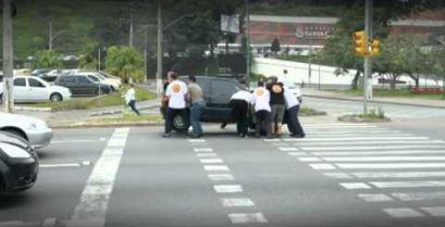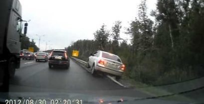 فتاة صغيرة (نعم فتاة) شلالات على غطاء محرك السيارة من سيارة في محاولة لتحويل المال من شركة التأمين لبرنامج التشغيل. لسوء الحظ سقطت للشرطة خارج الخدمة, مع الكاميرا في لوحة المعلومات.