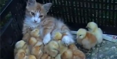 ماما بطة مع اشبال لها عبور الطريق سريع خطير في تورونتو، كندا