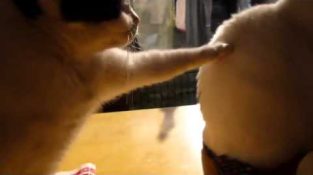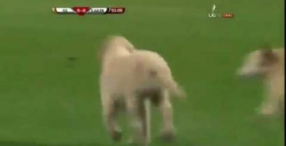 اثنين من الكلاب معا في مباراة لكرة القدم