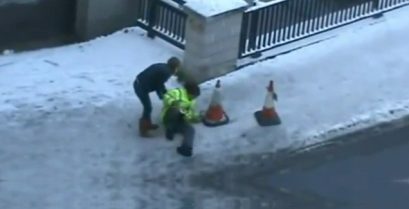 الأرصفة الجليدية وزلق جداً في 'نورويتش إنكلترا' مما تسبب في بعض حوادث مضحكة.