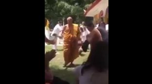 يتلقى الضيوف كبيرة نعمة راهب بوذي في معبد في بينانغ ماليزيا. أويتس!