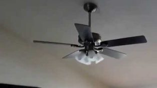 رجل تجميع مروحة في سقف الجديد, ولكن عند الانتهاء من العثور على أنه قد ارتكب خطأ صغير.
