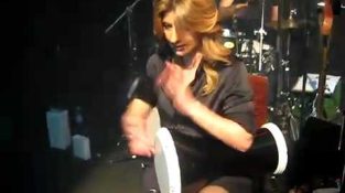 المغنية الإسرائيلية ساريت حداد يلعب طبل سوداء تسمى خزفية
