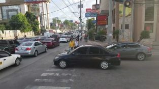 في مدينة في هندوراس, سائق غير صبور يتوقف عند معبر المشاة...فيديو من منظمة Movilízate HN لتوعية السائقين بالحفاظ على المسافة, أمام عبور المشاة.