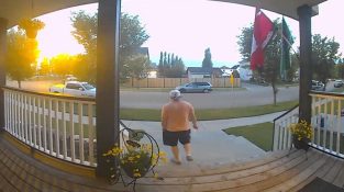 مفتول العضلات على الطريق ولكن لم حساب كلبه