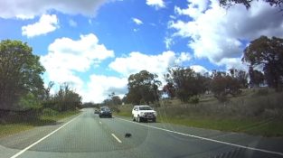 حيث يرى السائقين النيص يحاول عبور الطريق في أستراليا, توقف فورا والانتظار.