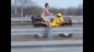 يعمل الرجل عاريا من رجال شرطة على ATV! الطريق السريع ATV مطاردة من الرجل عاريا على ATV!