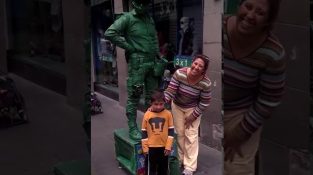 في مدينة ماتا فيلومينو المكسيك., فنان المتجولين بتمويه كجندي الأخضر من فيلم الأطفال 'توي ستوري', ويقضي وقتا ممتعا مع أم وابنها اللذين أرادوا التقاط صورة معًا [...]