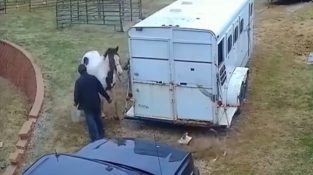 في مزرعة, الثور حفرة للهجوم وحلها في مزاج سيئ على حصان. ولكن الكلب سيدفع الثمن لأن الحصان سيعطي ركلة قوية.