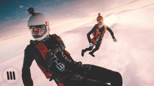 نيكولاس لوت يضع قيمتها كاميرا RED 25.000$ الخوذة, وتصوير جيسي ليوس وجاي فينيندال في حين أن ثلاثة منهم في الهواء.