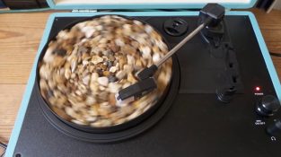 عقد مايكل ريدج تجربة موسيقية, ووضع الاستماع على القرص الدوار الفينيل مغطاة بالحجارة. هذا هو الصخرة الأصلية!