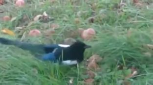 أكل العقعق التفاح المخمر. تم تحويل السكريات الموجودة في التفاح إلى كحول عن طريق التخمير, وشرب العقعق.