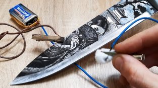 المستخدم كيريل رونز من أوكرانيا, يصنع النقش الكهروكيميائي للتصميمات على المعادن. هنا يوضح لنا كيف يصنع أحد أعماله على السكين.