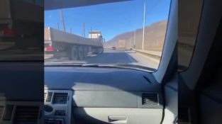 سائق فاقد الوعي يتخطى بين شاحنتين