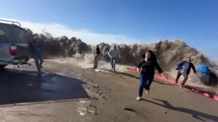 موجة ضخمة تفاجئ المارة