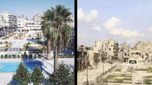 Μια σειρά φωτογραφιών η μία δίπλα στην άλλη δείχνει την καταστροφική μανία του πολέμου στη Συρία.