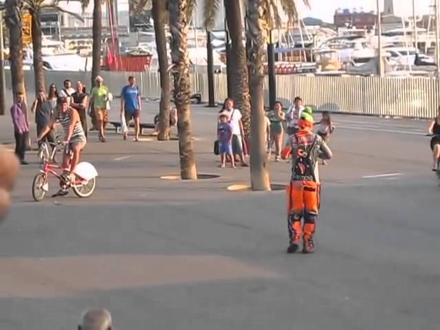 Най-мим и комик Karcocha от Чили забавляват минувачите в парк в Барселона.