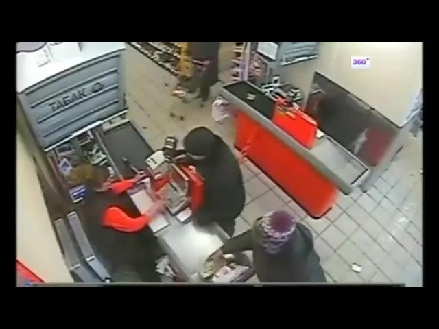 Въоръжен мъж се опитва да ограби магазин в Русия, когато един офицер го доближава до предизвикателство на, казва, че ако не си купя нещо трябва да напусне опашката.