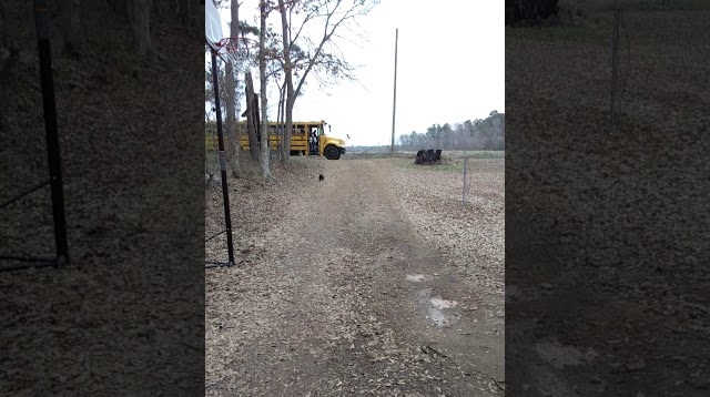 Всеки ден, петел работи с радост да приветстват Савана, когато момичето се превръща от училище с автобус.