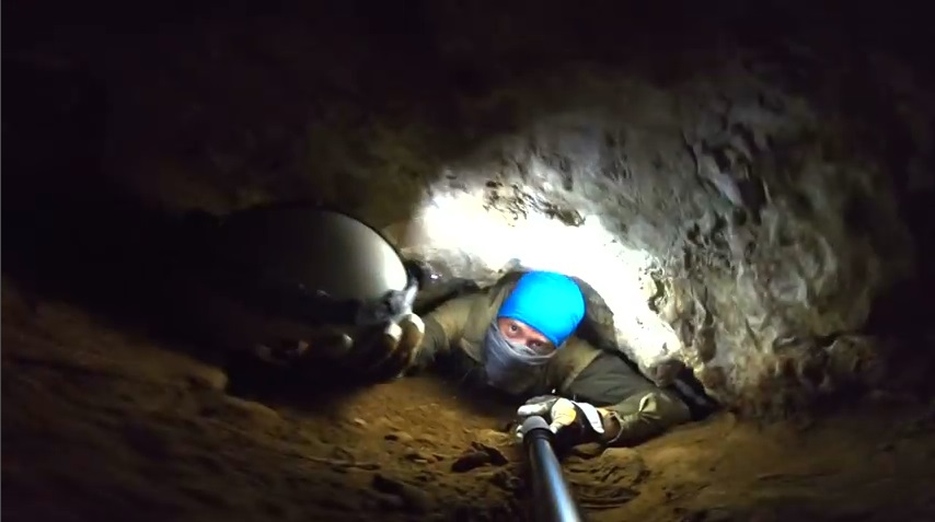 Проучване в много тясна пещера, Юта, в Съединените щати. Стиховете са толкова тесни, че едва ли се поберат органите на изследователи. Сцените са изумителни.