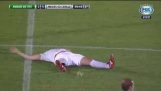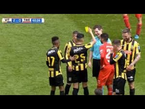 На 33-тия ден от холандския шампионат, рефера на мача между Витес и Твенте, застанал пред играча Navarone Етаж и се сблъсква с него. След объркването ще получите Етаж, Вие ще получите жълт картон от джоба си рефер, и той ще издигне предизвиква смях на зрителите.