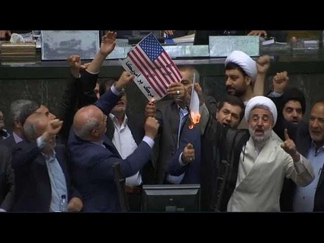 След Доналд Тръмп решение за излизане от САЩ ядрено споразумение Иран (и връщането на икономически санкции), Ирански депутати протестираха в парламента изгаряне на американското знаме. След това, няколко други депутати започнаха да скандират 'Смърт на Америка'.